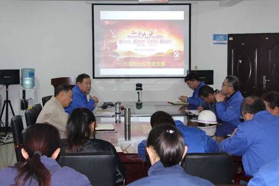 天富陽光黨(dang)支(zhi)部(bu)書記魯勝利在本次會議(yi)上(shang)強調:“第四季度,公司生產、建設(she)任務(wu)繁重,全面貫徹落實黨(dang)的(de)十(shi)九(jiu)大精神(shen)是天富陽光公司黨(dang)支(zhi)部(bu)近期的(de)主要工作(zuo),黨(dang)員、干部(bu)要用(yong)十(shi)九(jiu)大報告武(wu)裝頭腦(nao),指導下一階段公司的(de)工作(zuo)”。